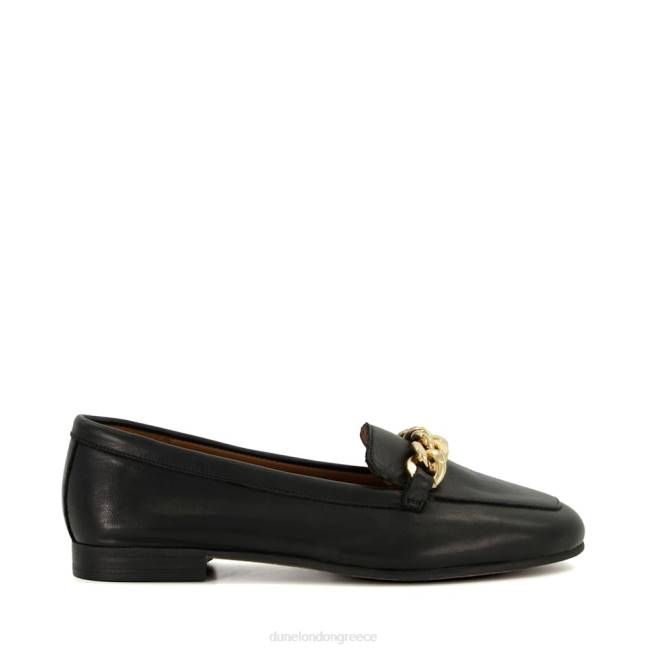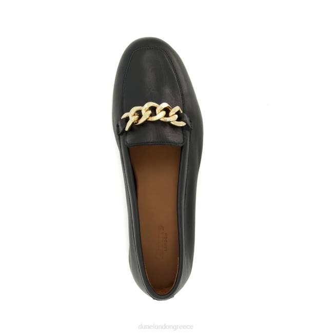 Dune London μαύρος γυναίκες δερμάτινα loafers με αλυσίδα J84Z348 χρυσοχόος