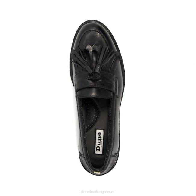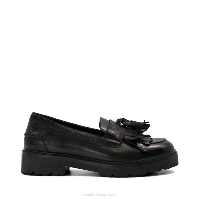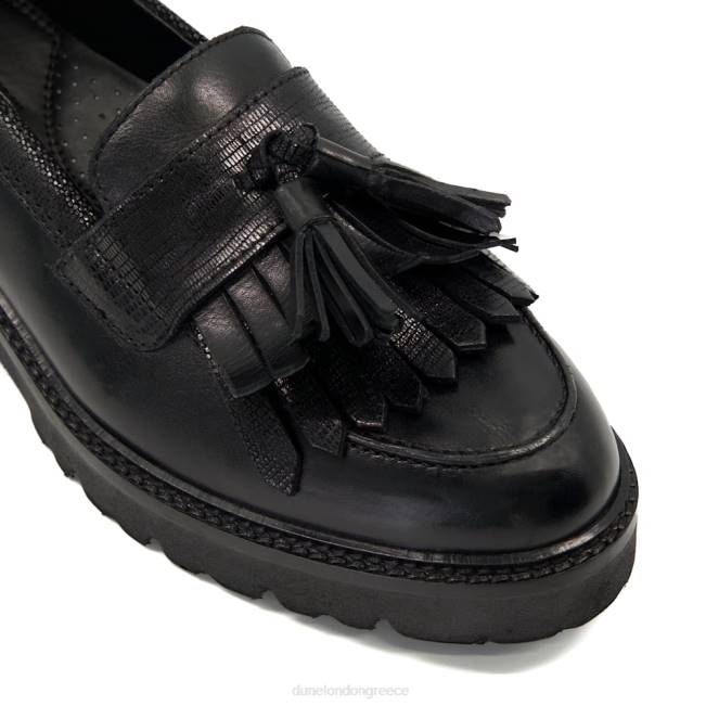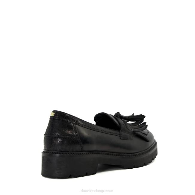 Dune London μαύρος γυναίκες δερμάτινα loafers με στολισμένα κρόσσια J84Z326 κηδεμόνας