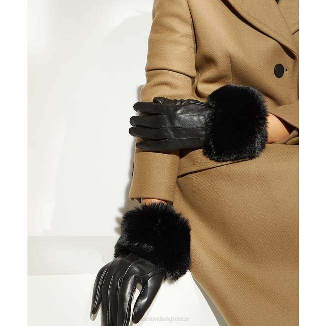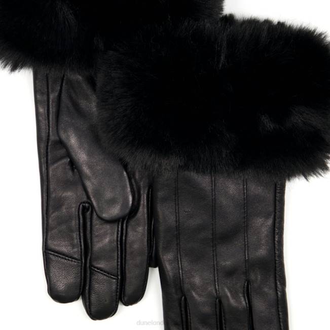 Dune London μαύρος γυναίκες δερμάτινα γάντια από συνθετική γούνα J84Z283 islington