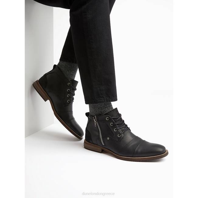 Dune London μαύρος άνδρες δερμάτινες μπότες με λεπτομέρεια με διπλό δάχτυλο J84Z851 καπετάνιοι